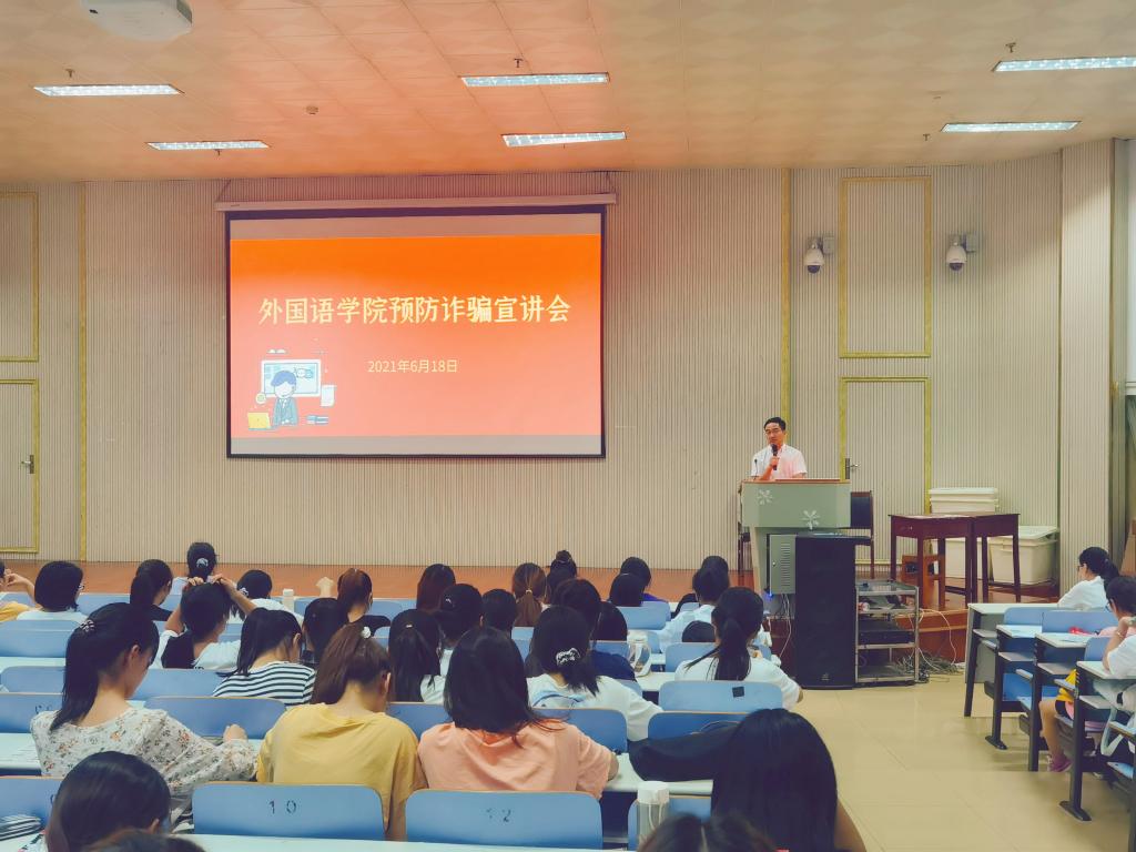 宣讲会上,柏孟仁向同学们详细讲解了什么是电信网络诈骗、电信网络诈骗犯罪的特点、常见的电信网络诈骗手段以及如何防范电信网络诈骗。针对高校常见诈骗手段,他从作案特点和受害人心理等角度进行了重点剖析,以案说法揭露诈骗骗局,提醒同学们加强心理预防,做到“不轻信、不透露、不转账”。他指出,习近平总书记、李克强总理从提高人民群众幸福感、获得感、安全感的高度,就严厉打击电信诈骗类犯罪作了重要指示和批示,希望同学们多了解周边的电信诈骗案例,学习预防电信诈骗知识,提高电信诈骗防范意识,避免成为电信诈骗的受害者。