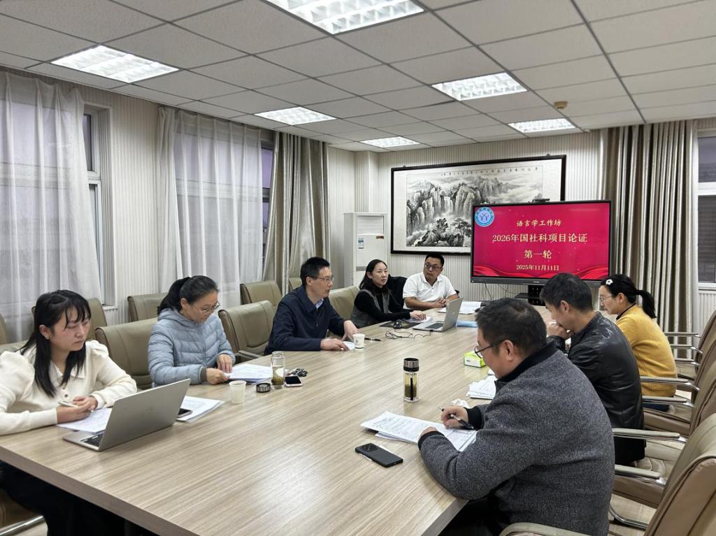 为扎实推进国家社会科学基金项目申报工作,提升语言学方向的课题选题质量,2025年11月11日下午,云顶yd2223线路检测在人文楼五楼会议室举办2026年度国社科项目申报工作坊(语言学)第一次选题论证会。会议由王辰玲老师主持。
