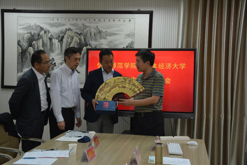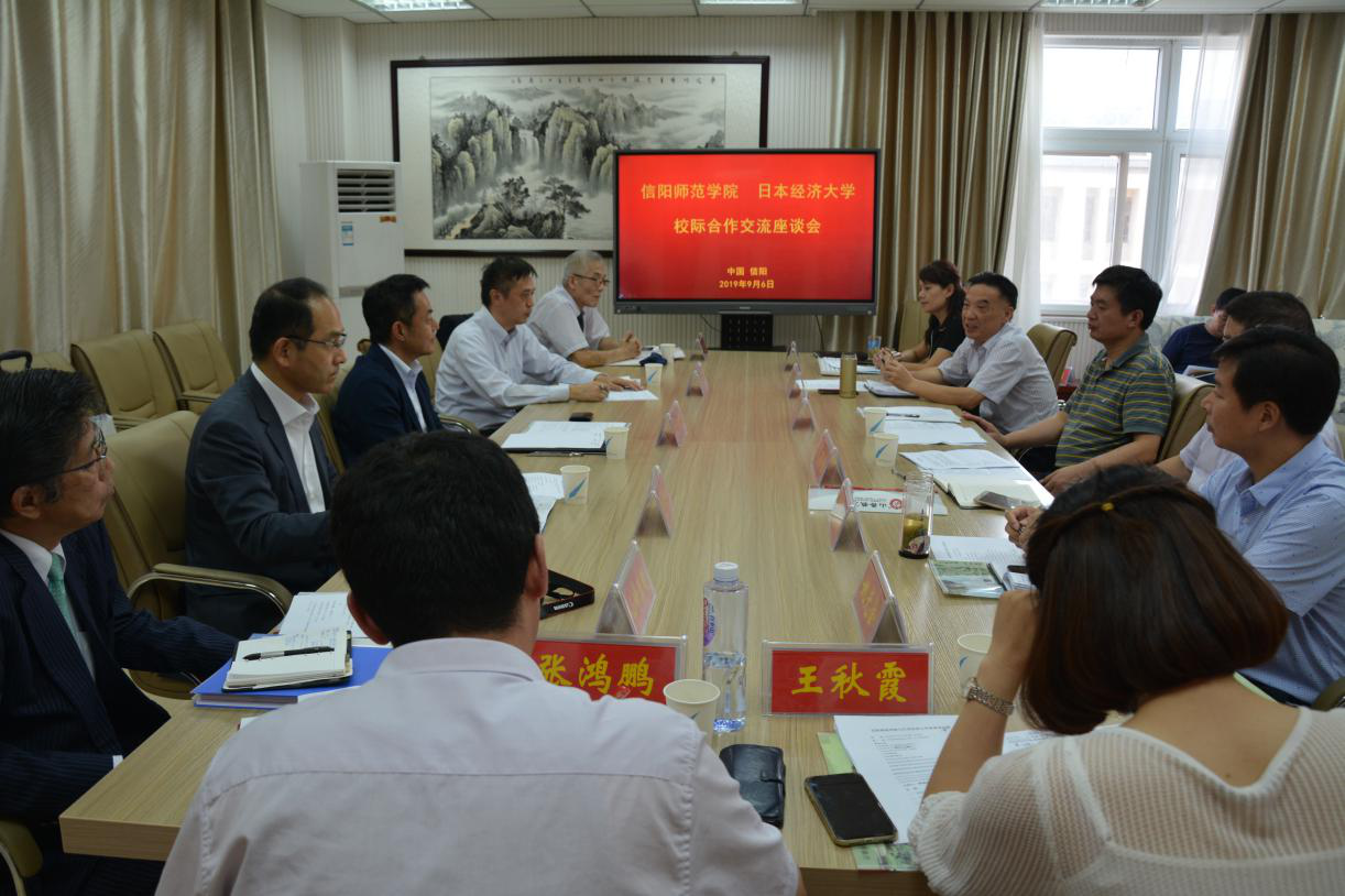 会议伊始,与会人员一同观看了信阳师范学院宣传片。余本海致欢迎辞,他代表学校对古贺郁人一行的到来表示热烈欢迎,简要介绍了公司的发展历史、团队建设、员工国际交流等情况。古贺郁人高度赞扬了公司浓厚的学习氛围,介绍了日本经济大学的办学规模、历史沿革和办学特色。随后,双方围绕签订合作交流协议、交换职工及双学位项目、科学研究等方面进行磋商。周学红总结讲话,他对日本经济大学的办学理念表示认同,希望双方尽快落实达成的共识,推动校际合作与交流向更高层次迈进。