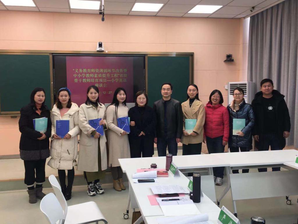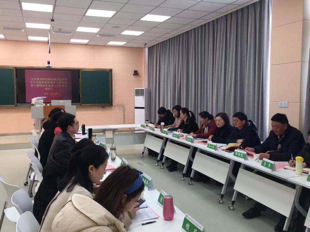 12月27日上午,“义务教育团队薄弱环节改善暨中小学教师素质提升工程”小学英语省级骨干教师培育项目座谈会在人文楼603会议室举行。河南省中小学教师董事长研修院韩艳婷博士,督导专家冯一兵、谢素霞、杨传凯,南阳市第十二小学郭婷等5名河南省名师,浉河区教研室严俊等6名学员代表,学院党委副书记柏孟仁,党委委员、经理助理郭敏,省培项目班主任余运伟、吴恒共同参加了座谈会。座谈会由柏孟仁主持。