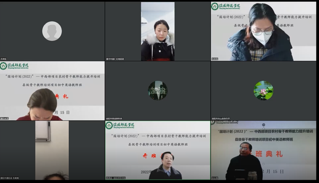 12月15日上午,“国培计划(2022)”县级骨干教师提升培训初中英语教师培训班开班典礼通过腾讯会议在线上举行。云顶yd2223线路检测经理蔡满园、副经理余永锋、一线导师团队新县首府实验中学董事长黄庆友、刘文娟、黄丽、杨艳、朱转转及培训班班主任杨恩莲出席典礼。来自濮阳、漯河及信阳等3个地市基础教育一线的近50名学员参加典礼。开班典礼由余永锋主持。