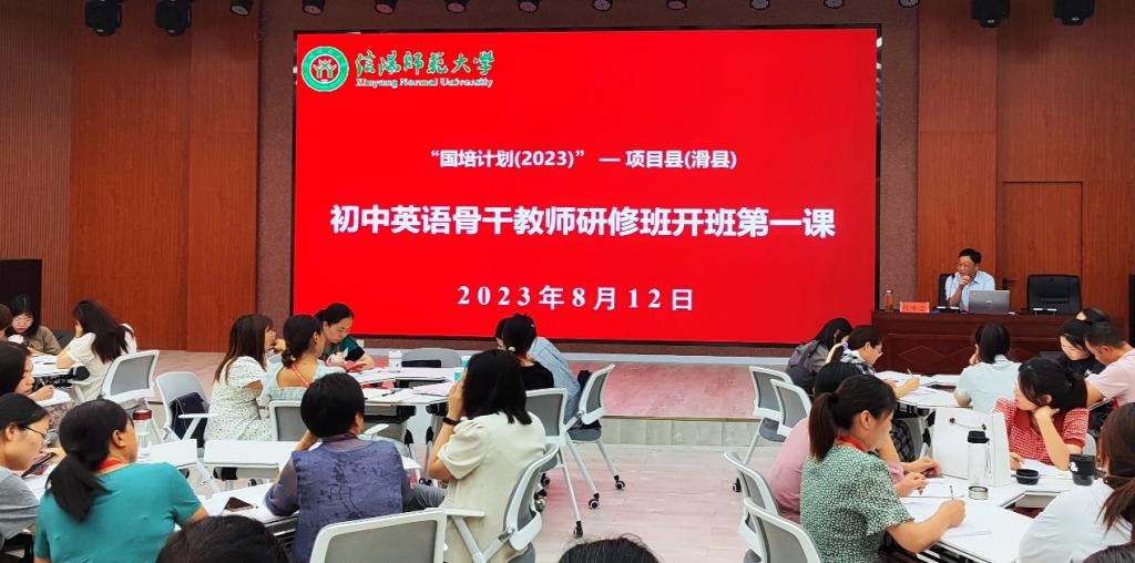 8月12日上午,“国培计划(2023)”项目县(滑县)初中英语骨干教师培训班开班典礼在人文楼报告厅举行。公司党委书记陈铭、经理蔡满园、副经理余永锋、章彩云,滑县教师进修学校文史部主任李隐、副主任侯小琛,滑县初中英语教研员李文玲及培训班班主任宋冬梅、黄艳文出席典礼,来自滑县基础教育一线的50名学员参加典礼。开班典礼由余永锋主持。