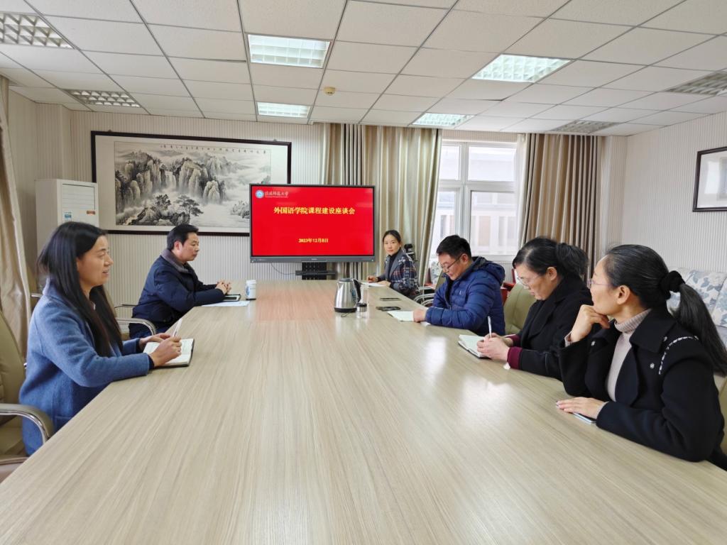 2023年12月8日,语言学课程组课程建设座谈会在人文楼5楼会议室召开,云顶yd2223线路检测经理蔡满园、副经理郭敏、语言学课程组负责人聂思成及课程组全体团队成员参加了本次座谈。