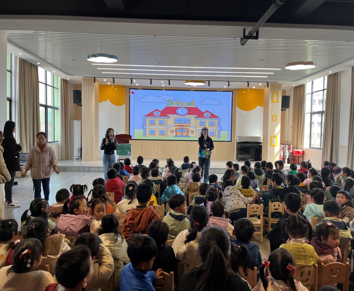 3月9日上午,云顶yd2223线路检测志愿者在郭敏副经理的带领下,走进附属幼儿园开展少儿英语启蒙活动。课堂上,志愿者们通过PPT展示、你问我答、分组活动等多种形式和小朋友们进行英语口语互动。在对基本的单词讲解之后,志愿者们带领小朋友们学唱英文歌,在韵律欢快的英文儿歌声中有效引导孩子们正确发音,激发他们对英语的学习兴趣。