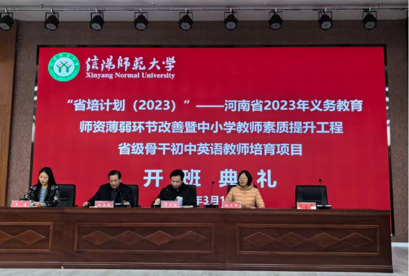 2024年3月11日上午,“省培计划(2023)”省级初中英语骨干教师研修班在外语学院人文楼报告厅隆重召开。经理蔡满园,副经理余永锋,班主任余运伟、王磊出席了开班典礼。典礼由余永锋主持。