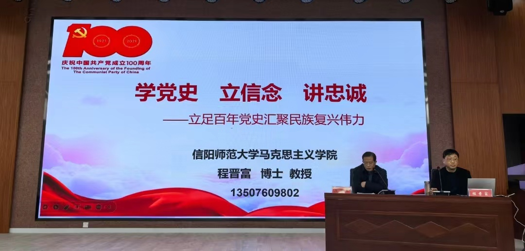 开班典礼结束后,马克思主义学院副经理程晋富教授为参训学员作了题为《学党史 立信念 讲忠诚——立足百年党史汇聚民族复兴伟力》的开班第一课专题讲座。
